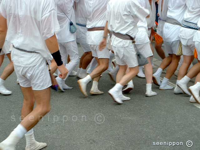Summer festival - Dancers with white cloth shoes in a summer festival, near Tokyo. Throughout Japan, summer festivals are conducting in a very traditional way. Some are linking to Japanese shrines, but some are organizing by local communities. Since ancient times, after busy rice planting season in May, these festivals are adding a color to Japanese life. |