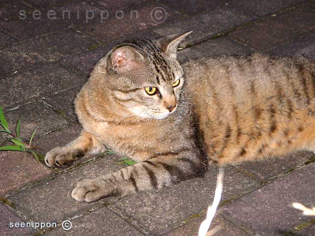 Streat Cats - Perhaps, cats are the most photogenic creatures of the world. It's a very popular pet in Japan, but street cats can be seen in many places of Japanese cities. Almost all dogs are living with owners and not visible like these street cats. Streets cats are generally live in middle class quarters of cities and also in public parks. This particular proud male cat is also living in a park near Tokyo, and feeds by people those who are having a hobby to feed street cats. In a standard pet shop, a highbred kitten can be priced from 30,000 yen (300 US$) to onward. Cats are one of the earliest pets adopted by humans even before the ancient Egypt civilization. |